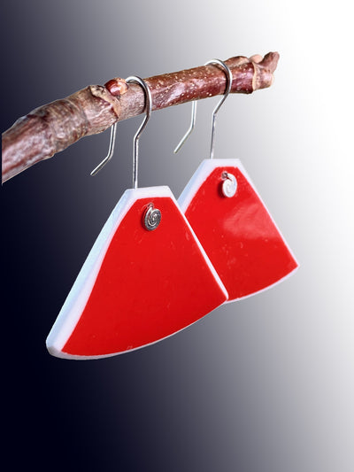 These earrings are made from carefully chosen upcycled dinnerware. They are ground smooth and the porous edges are sealed. The sterling silver earwire is 0.8mm thick, a standard thickness for earrings. The silver wire is polished smooth and will be safe for your ears.