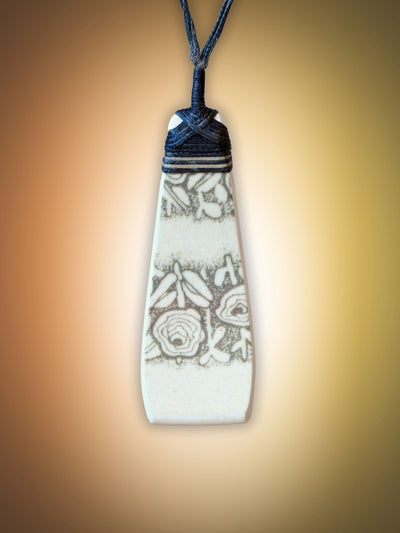 Brendon has cross-lashed this piece using durable nylon cord, and it's adjustable length to be worn wherever suits you and your outfit.