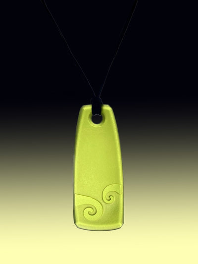 This pendant has koru designs sandblasted into the glass.