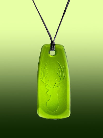 This pendant has a outline of a stag sandblasted into the front side of the glass.
