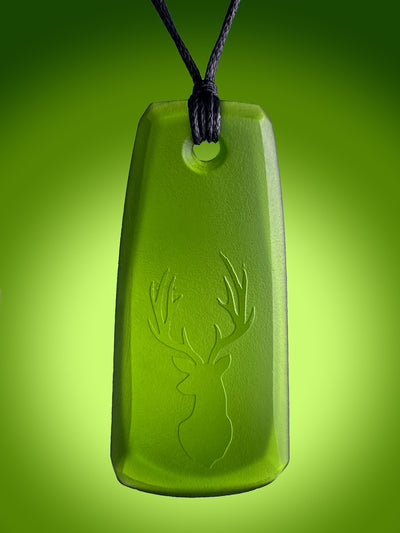 This pendant has a outline of a stag sandblasted into the front side of the glass.