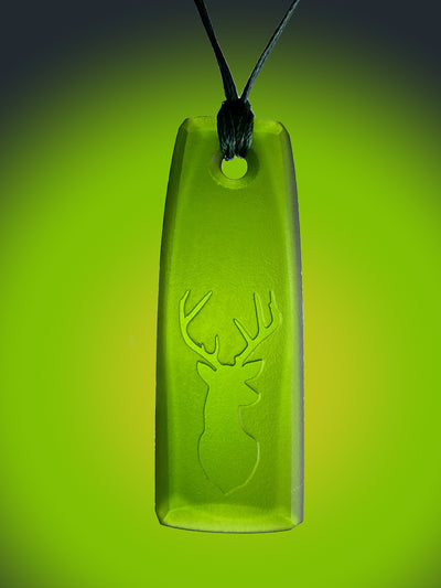 This pendant has a outline of a stag sandblasted into the front side of the glass.