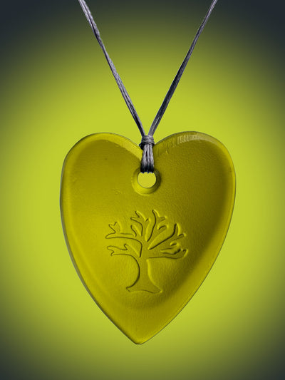 This pendant has a outline of a tree sandblasted into the front side of the glass.