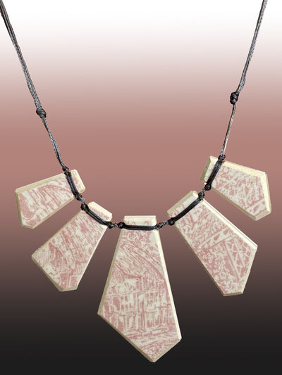 After cutting the china, Brendon grinds the edges smooth and blunt. He then seals the unglazed edges so they will stay white and clean. These necklaces are smooth and safe against your skin.