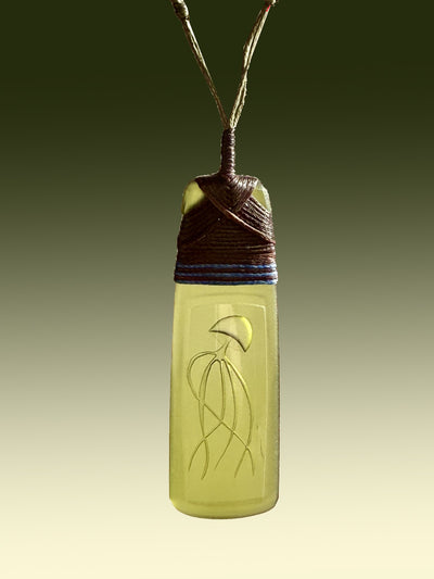 This pieces is cross-lashed in the stye or Maori hei toki, or adzes. Each of the cords are adjustable and are finished with Brendon's signature brass and copper handmade latches.