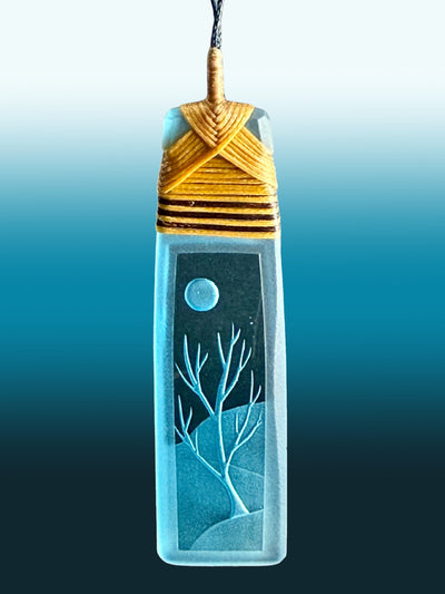 This pieces is cross-lashed in the stye or Maori hei toki, or adzes. Each of the cords are adjustable and are finished with Brendon's signature brass and copper handmade latches.