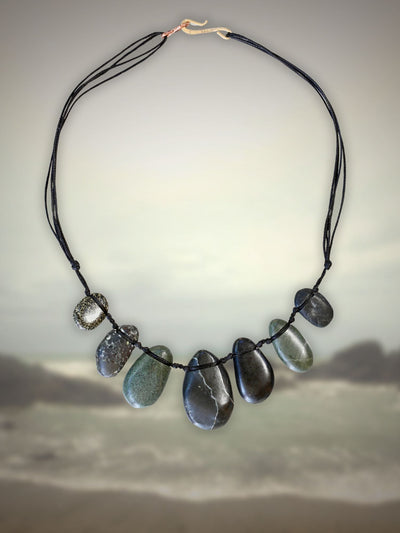 Born from the wild, windswept shores of New Zealand's South Coast, each of these necklaces is a unique piece of Aotearoa. Hand-collected from beaches where the Southern Ocean meets the land, the smooth, ocean-tumbled stones tell a story of the formation of the continent of Zealandia, glacial rivers, and the powerful, ever-changing sea.