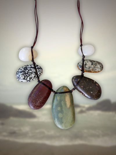 Born from the wild, windswept shores of New Zealand's South Coast, each of these necklaces is a unique piece of Aotearoa. Hand-collected from beaches where the Southern Ocean meets the land, the smooth, ocean-tumbled stones tell a story of the formation of the continent of Zealandia, glacial rivers, and the powerful, ever-changing sea.