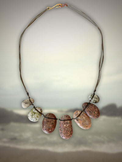 Born from the wild, windswept shores of New Zealand's South Coast, each of these necklaces is a unique piece of Aotearoa. Hand-collected from beaches where the Southern Ocean meets the land, the smooth, ocean-tumbled stones tell a story of the formation of the continent of Zealandia, glacial rivers, and the powerful, ever-changing sea.