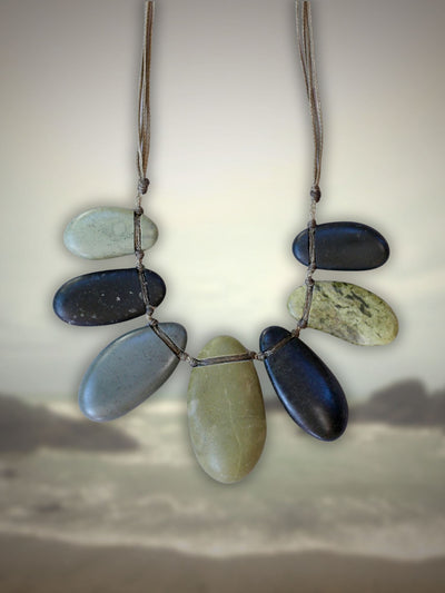 Born from the wild, windswept shores of New Zealand's South Coast, each of these necklaces is a unique piece of Aotearoa. Hand-collected from beaches where the Southern Ocean meets the land, the smooth, ocean-tumbled stones tell a story of the formation of the continent of Zealandia, glacial rivers, and the powerful, ever-changing sea.