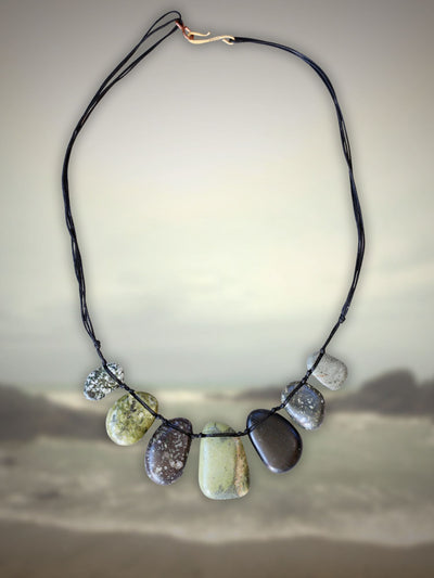 Born from the wild, windswept shores of New Zealand's South Coast, each of these necklaces is a unique piece of Aotearoa. Hand-collected from beaches where the Southern Ocean meets the land, the smooth, ocean-tumbled stones tell a story of the formation of the continent of Zealandia, glacial rivers, and the powerful, ever-changing sea.