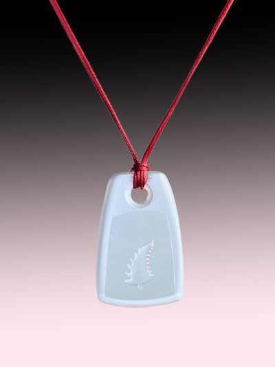 This pendant has a fern frond design sandblasted into the back, and a clear panel in the front to highlight the light refraction within the glass.